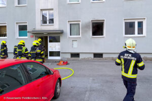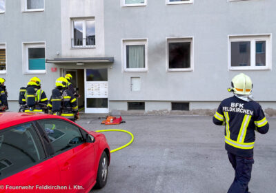 Am 14. März 2026 wurde die Feuerwehr Feldkirchen kurz vor 17:00 Uhr zu einem Wohnungsbrand in einem Mehrparteienhaus in Feldkirchen alarmiert. In einer Wohnung war es beim Befüllen eines tragbaren Camping-Ethanolofens zu einer gefährlichen Stichflamme und in weiterer Folge zu einer Brandentwicklung gekommen.